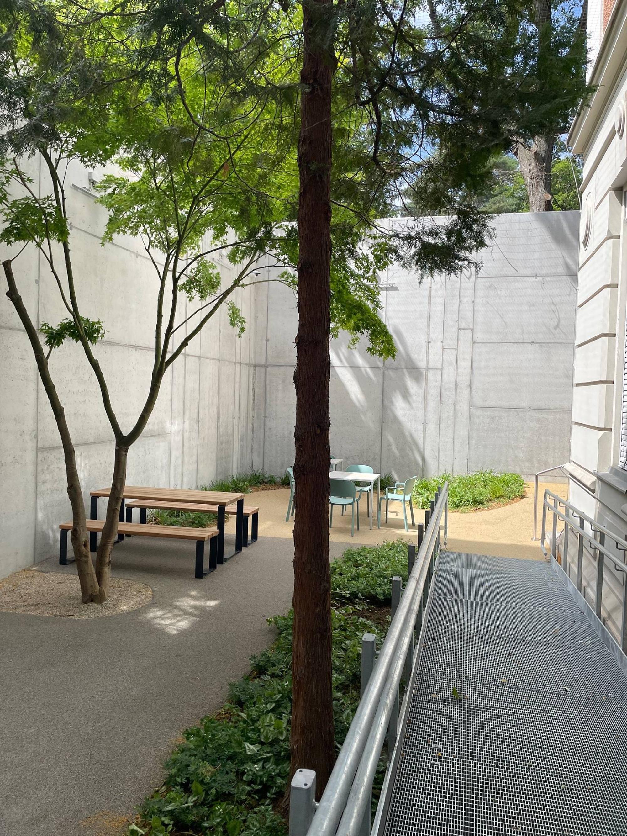 Da der Pavillon unter Denkmalschutz steht, erfolgt die Planung in enger Abstimmung mit dem Bundesdenkmalamt. Notwendige sicherheitstechnische Maßnahmen wie Ausbruchssicherungen, Videoüberwachung und Notrufsysteme werden kontinuierlich mit den NutzerInnen abgestimmt.